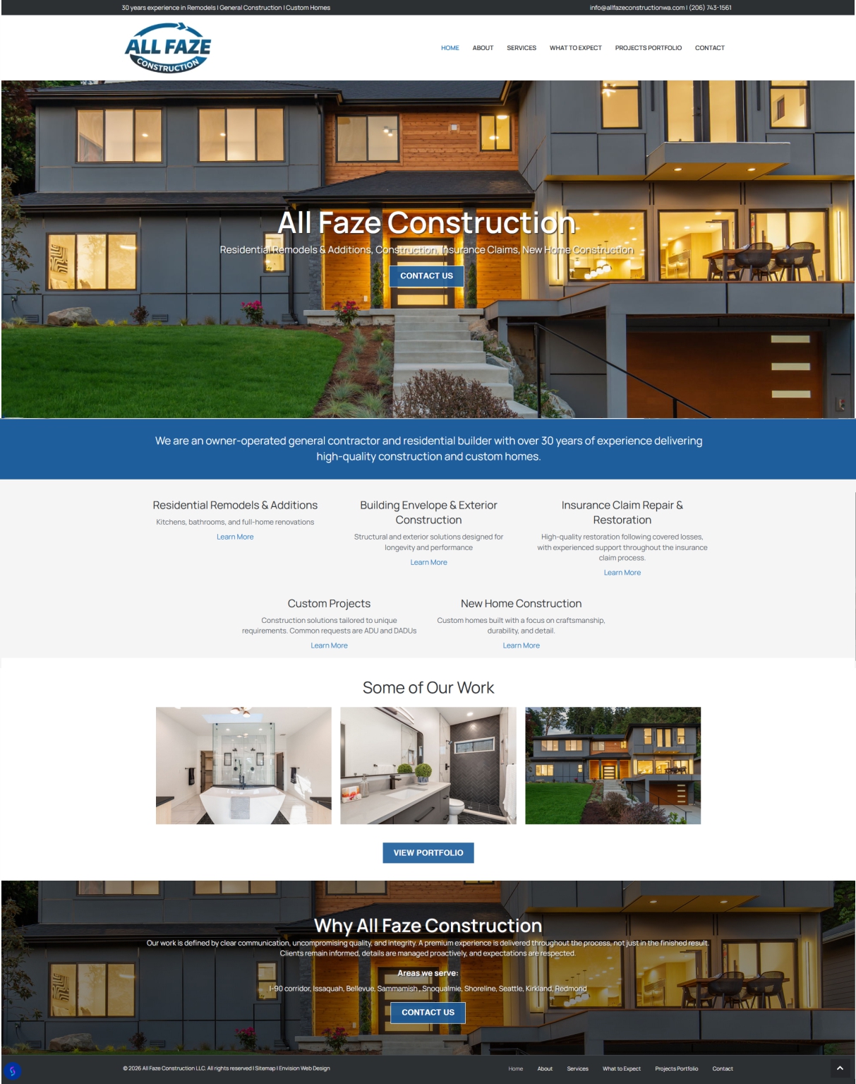 All Faze Construction contacted me as they were looking for a website as part of the marketing for their new company. They provided the logo, photos and content and let me come up with a design concept.